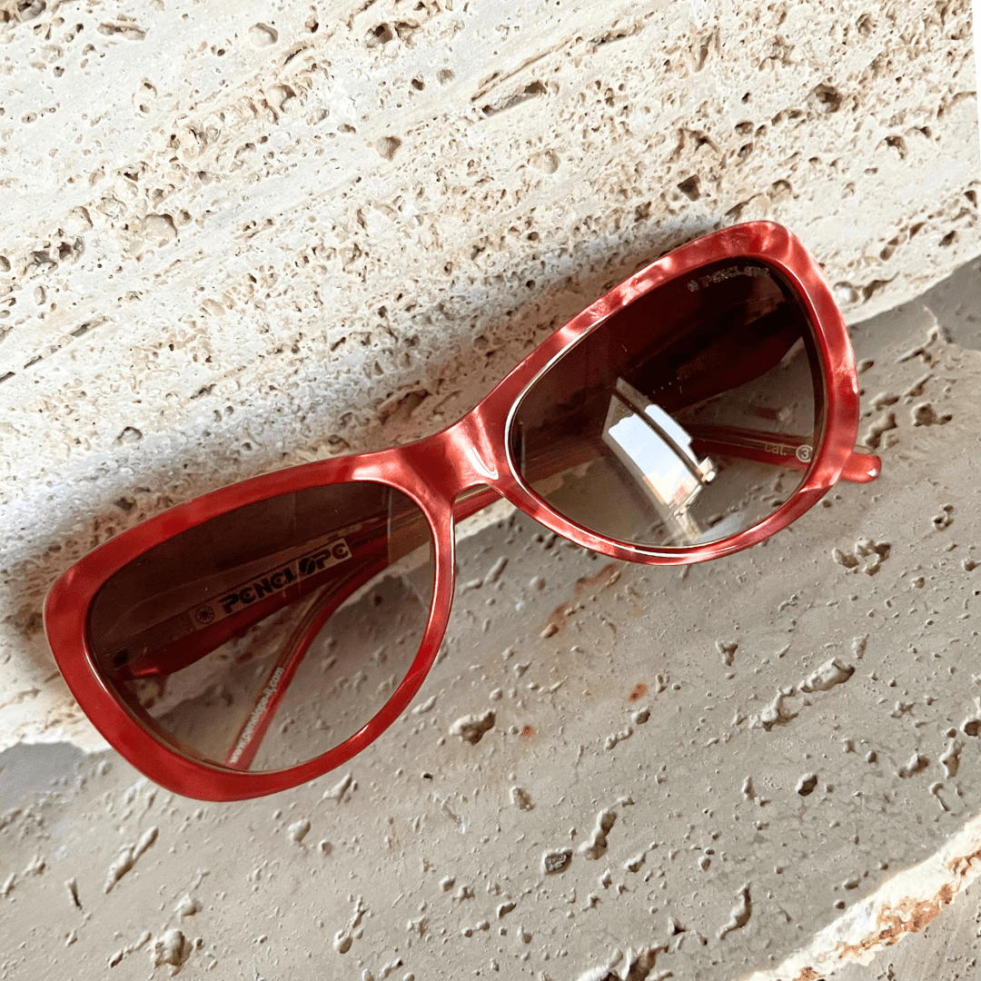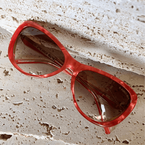 Penelope Fragrance collection in Cat Eye style. This pair has honey and Red Salmon frame color. Perfect for sunny weather.