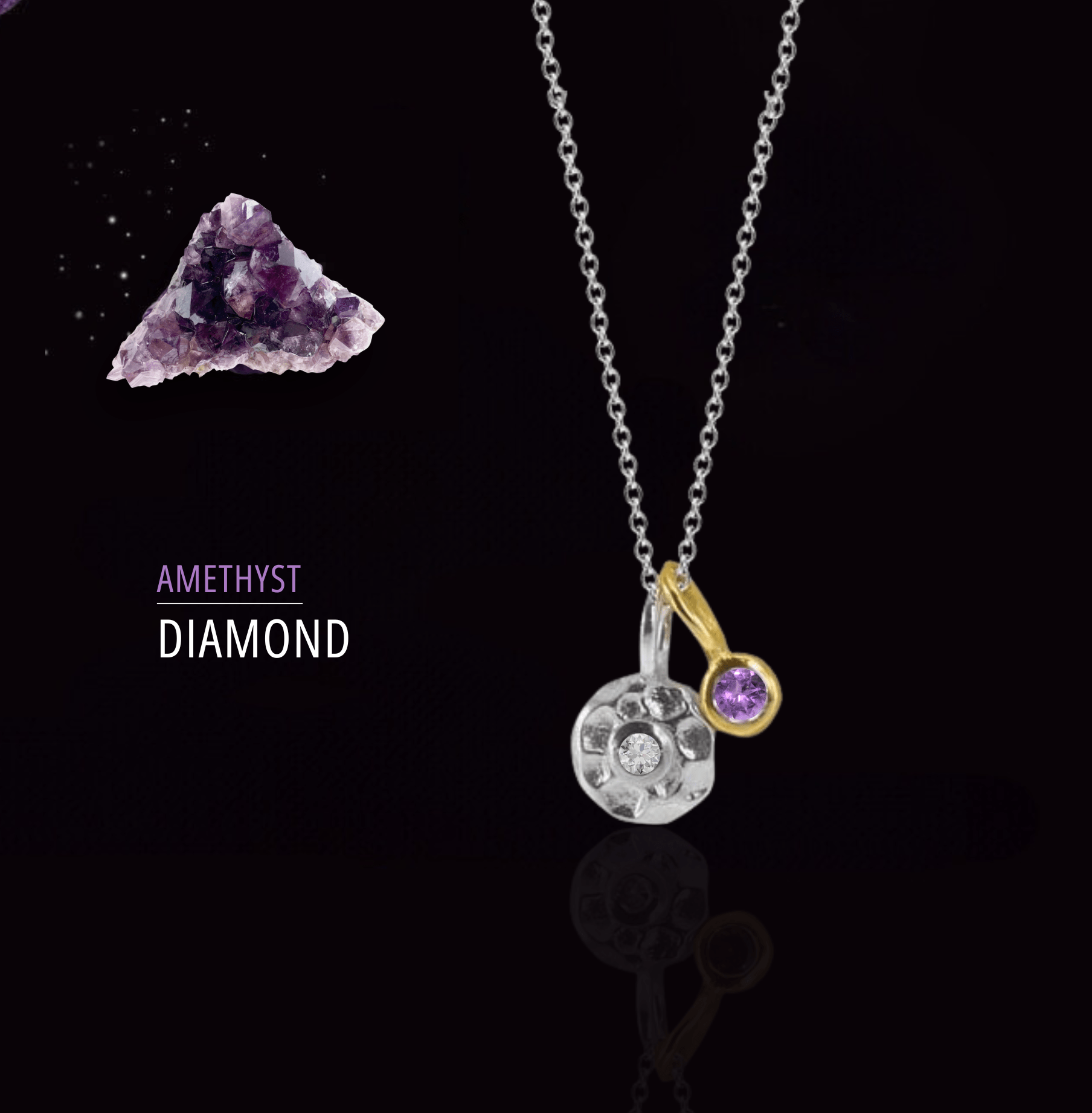Gurët: Ametist & Diamant Materiali: Argjend i pastër 925 Platinimi: Larje ari 14K