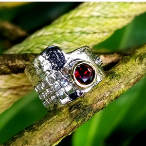 The Nanna Ring is made of a special and solid structure of silver 925 and adorned with a radiant garnet stone representing devotion and divine love. Nanna is the word for moon in the Sumerian language – inherited language of the Babylonians. Spiritual and unique, this piece will make you feel part of the mysticism of Babylon!