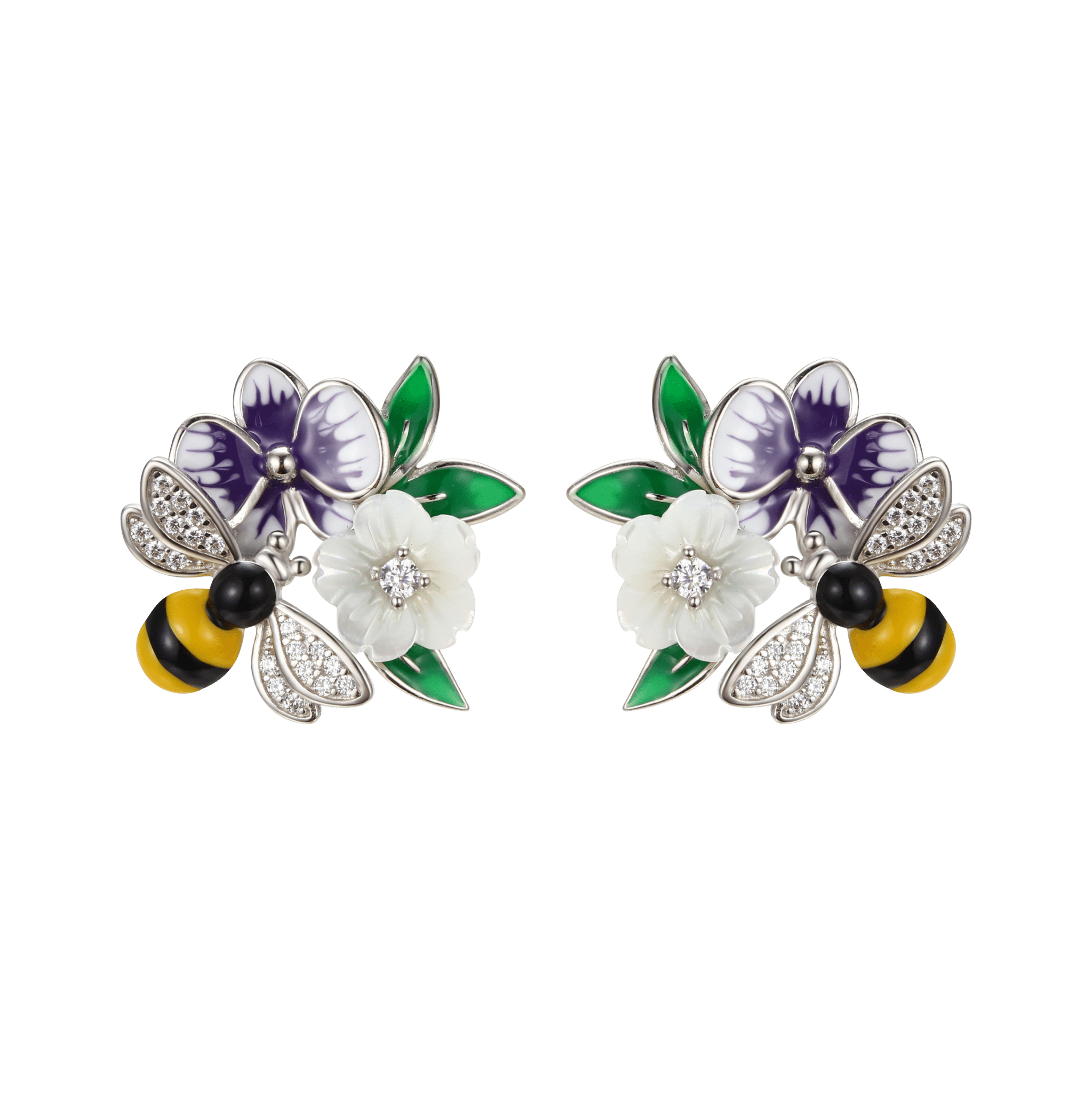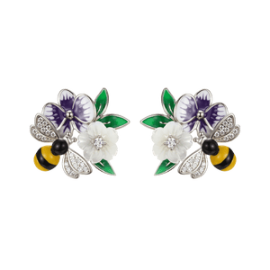 Blooming Violet Earrings from Penelope Eden Collection are the creative combination of 3 elements; white mother of pearls flower, enamel bee and enamel violet, all adorned with white cubic zirconia. These Earrings are a unique and elegant piece to bright up your collection!