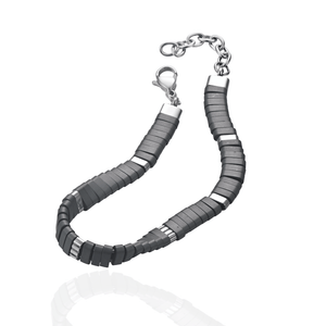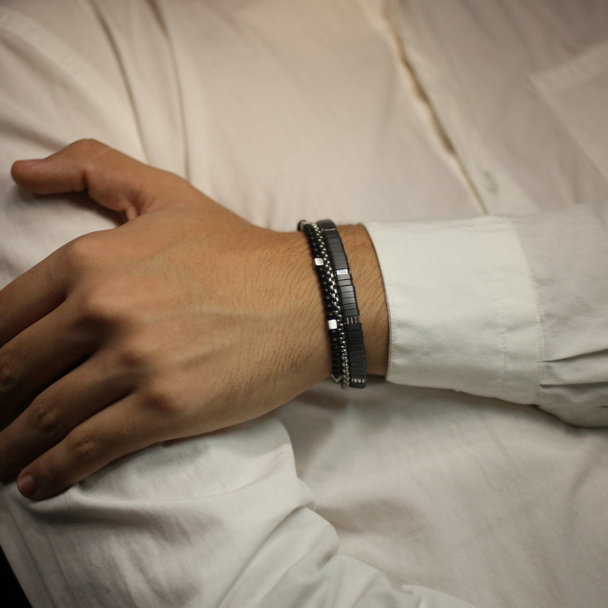 Adonis Bracelet kombinon elegancën e çelikut inox me detajet e hematit për një aksesor të rafinuar. I përshtatshëm për çdo rast, ky byzylyk do të shtojë stil dhe klas në koleksionin tuaj të rastësishëm apo formal.