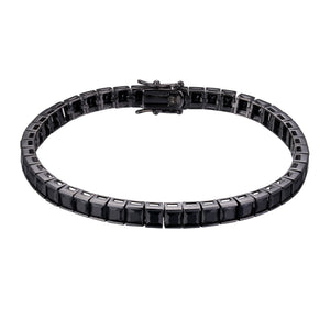 Midnight Eclipse Tennis Bracelet përmban zirkone të zeza të kombinuara me tonalitete të zeza për një pamje misterioze dhe të sofistikuar. Ky byzylyk është aksesor ideal për meshkujt që kërkojnë të shtojnë një prekje dramatike dhe elegante në stilin e tyre, duke bërë një deklaratë të fuqishme në çdo rast.