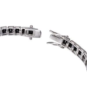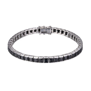 Onyx Radiance Tennis Bracelet kombinon zirkonet e zeza me tonalitete të arta, duke krijuar një aksesor luksoz dhe tërheqës. Ky byzylyk është i përsosur për meshkujt që kërkojnë të shtojnë një prekje të sofistikuar dhe të guximshme në veshjet e tyre, duke u bërë pika qendrore në çdo rast.