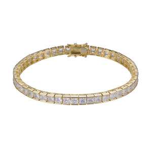 Golden Horizont Tennis Bracelet sjell një kombinim të zirkoneve të bardha me tonalitete të arta, duke krijuar një aksesor elegant dhe të rafinuar. Perfekt për meshkujt që duan të shtojnë një prekje luksi dhe ndriçimi në veshjet e tyre, ky byzylyk shkëlqen në çdo rast, duke u bërë një element i pazëvendësueshëm i stilit tuaj."