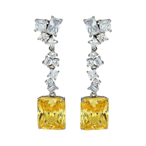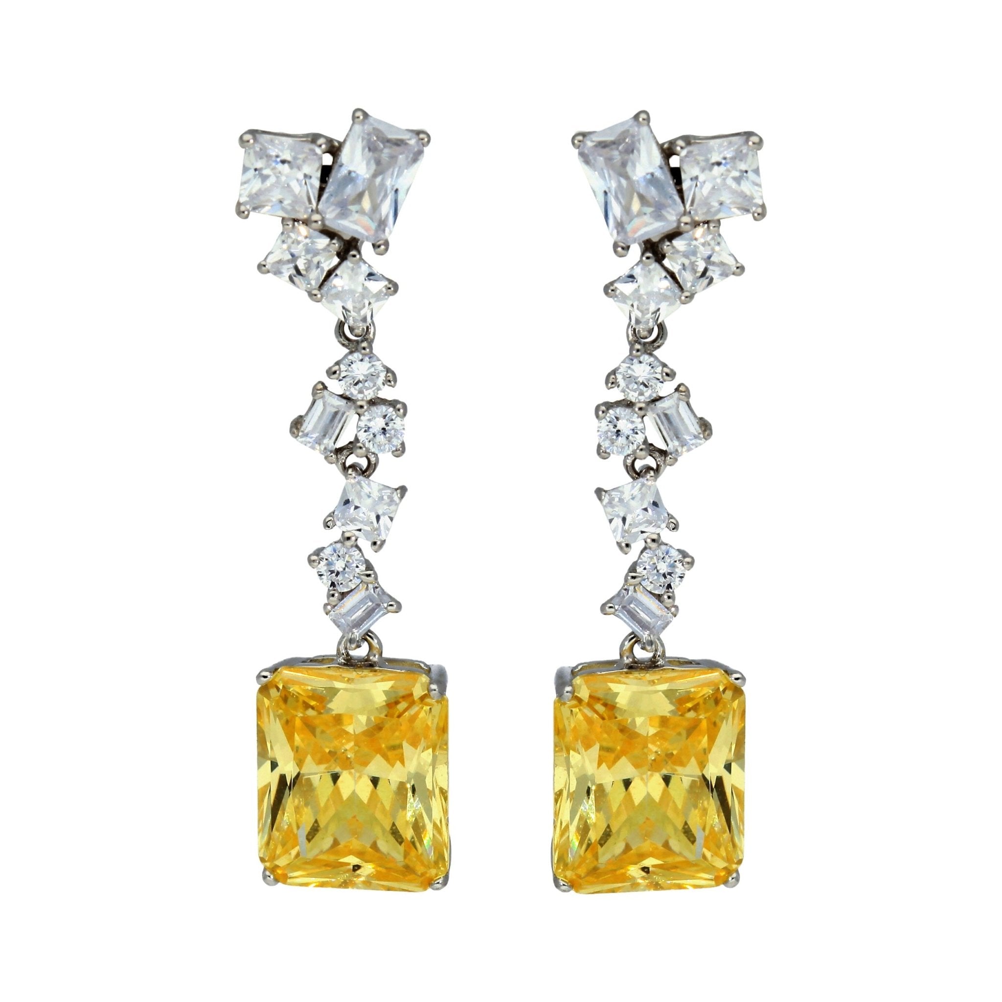 Një stoli e jashtëzakonshme e bërë për raste të veçanta. Ky shkëlqim kozmik është rezultat i materialit më të mirë, prerjes preçize të gurëve dhe kërkesave rigoroze të cilësisë. Një seri gurësh të bardhë zirconia me shkëlqim në forma të ndryshme janë bashkuar në mënyrë asimetrike për të krijuar këtë pamje moderne dhe për të shtuar shkëlqimin tërësor të kësaj stolie. Pjesa kryesore është prej një guri zirkon me prerje të veçantë dhe ngjyrë të verdhë duke e bërë këtë detaj elementin më tërheqës të kësaj varësje.
