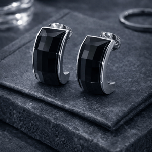 Vathë modern në çelik inox me gur Onix të zi me prerje fasetuar, që reflekton dritën në mënyrë elegante dhe diskrete. Dizajni minimalist me linja të pastra i jep një pamje luksoze dhe bashkëkohore, ideale për përdorim të përditshëm ose kombinime smart-casual.