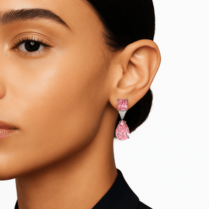 Shkëlqimi i jashtëzakonshëm i këtyre gurëve të rozë zirkonia po tërheq vëmendjen e të gjithëve. Vathët me shkëlqim rozë janë bërë nga tre gurë zirkonia që qëndrojnë në një bazë argjendi. Shkëndija e mrekullueshme e këtyre vathëve është rezultat i materialit më të mirë, prerjesprecize dhe kërkesave rigoroze të cilësisë. Bëhuni qëndra e vëmendjes së çdo dhome ku hyni me këtë stoli të jashtëzakonshme, moderne dhe elegante.