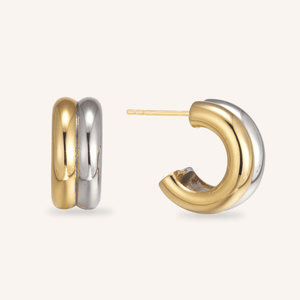Two-Tone Stack Earrings janë vathët perfektë që bashkojnë minimalizmin dhe stilin modern. Me një dizajn të përbërë nga dy ngjyra – ari dhe argjendi – këta vathë tërheqës krijojnë një balancë të përsosur midis elegancës dhe finesës bashkëkohore. Idealë për çdo ditë ose raste speciale, ata shtojnë një prekje të veçantë në çdo pamje.
