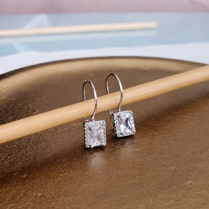 Vathët Diana Silver Earrings kanë një model të thjeshtë dhe elegant por të zbukuruar në detaje me gurë të vegjël zirkonia që i japin një ndriçim rrëzëllitës. Gurët qendror në ngjyrë te bardhe janë elementi kryesor i këtyre vathëve. Jepini shkëlqim veshjeve tuaja me këtë bizhu unike.