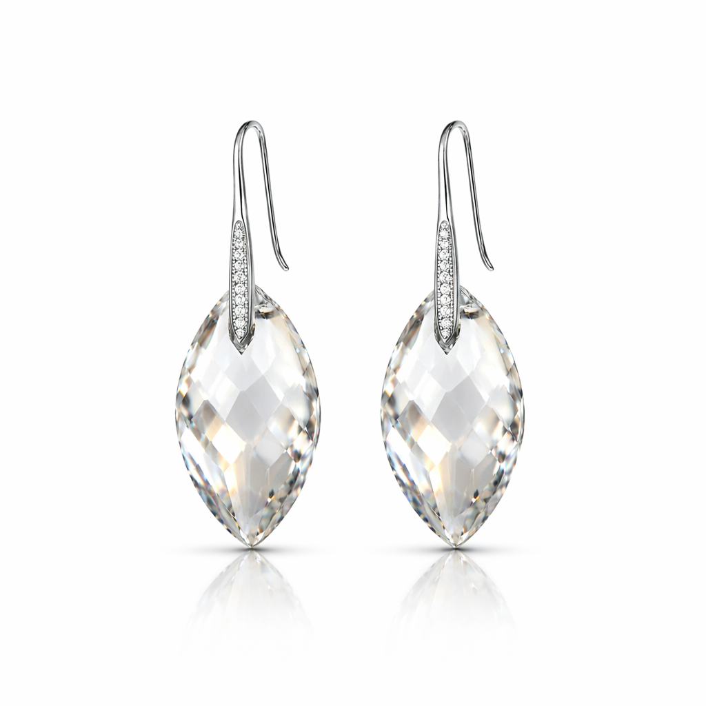 Vathë elegante me kristale të bardhë vezulluese, të punuara me argjend të pastër 925 dhe të veshura me rhodium për shklëqim dhe mbrojtje afatgjatë.