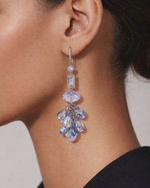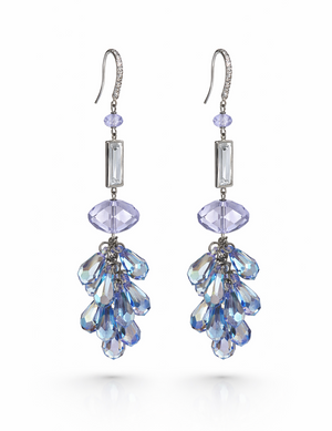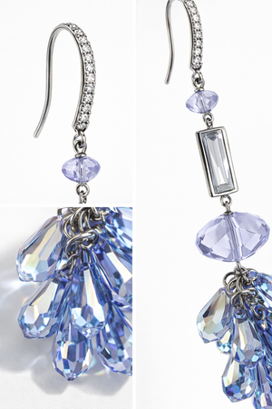 Gurët e vegjël blu dhe guri i madh lejla (purple) krijojnë një kontrast të mahnitshëm – elegancë dhe luksozitet në çdo lëvizje. Ngjyrat simbolizojnë qetësinë dhe misterit, duke i bërë këta vathë idealë për çdo rast – nga përditëshëmria deri tek eventet speciale.