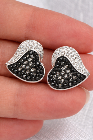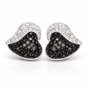 Vathët Zemër me Kristale janë krijuar për gruan që bart elegancën me vete. Forma e zemërs, e punuar me argjend të pastër 925 dhe platinuar me Rhodium, ndrihet nga kristalet bardh e zi – simbol i ekuilibrit delikat midis dritës dhe hijes.