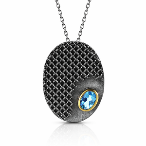 Varja Modern Babylon është thurur me mjeshtëri artizanale me dorë në argjend të pastër 925, e zbukuruar me rodium të zi dhe një gur Topaz Blu që tërheq vëmendjen. Struktura e saj të kujton të shkuarën arkeologjike të Babilonisë — një copë e përjetshme që bashkon antikitetin me dizajnin modern.
