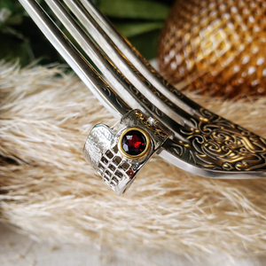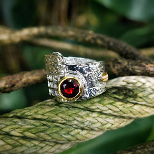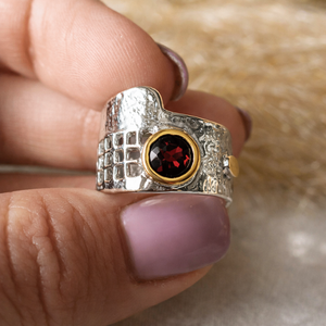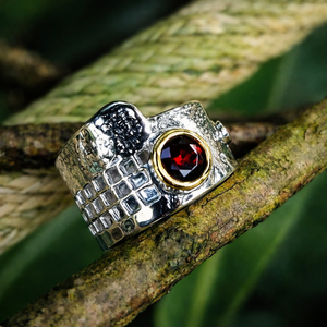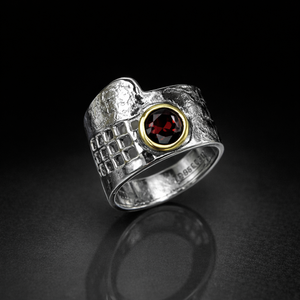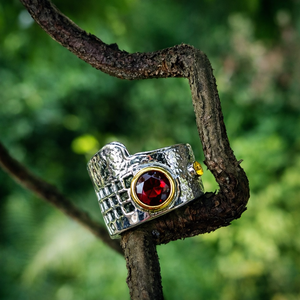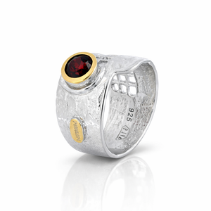 Unaza Nanna është krijuar nga një strukturë e fortë dhe elegante në argjend të pastër 925, e zbukuruar me një gur granati rrezatues që simbolizon devotshmrinë dhe dashurinë hyjnore. Nanna është fjala për hënë në gjuhën sumeriane — gjuhë e trashguar e Babilonasve.