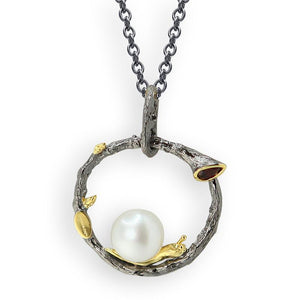 The Sea Harmony Necklace with the special detail of the trumpet, symbolizes the vibrant sounds of nature. Under the special care and love of our designers, the pearls are sheltered in the design of nature forming an amazing relation. The perfectly round shape pearl, garnet, sharp luster and shimmering overtones will make you look enlightened!