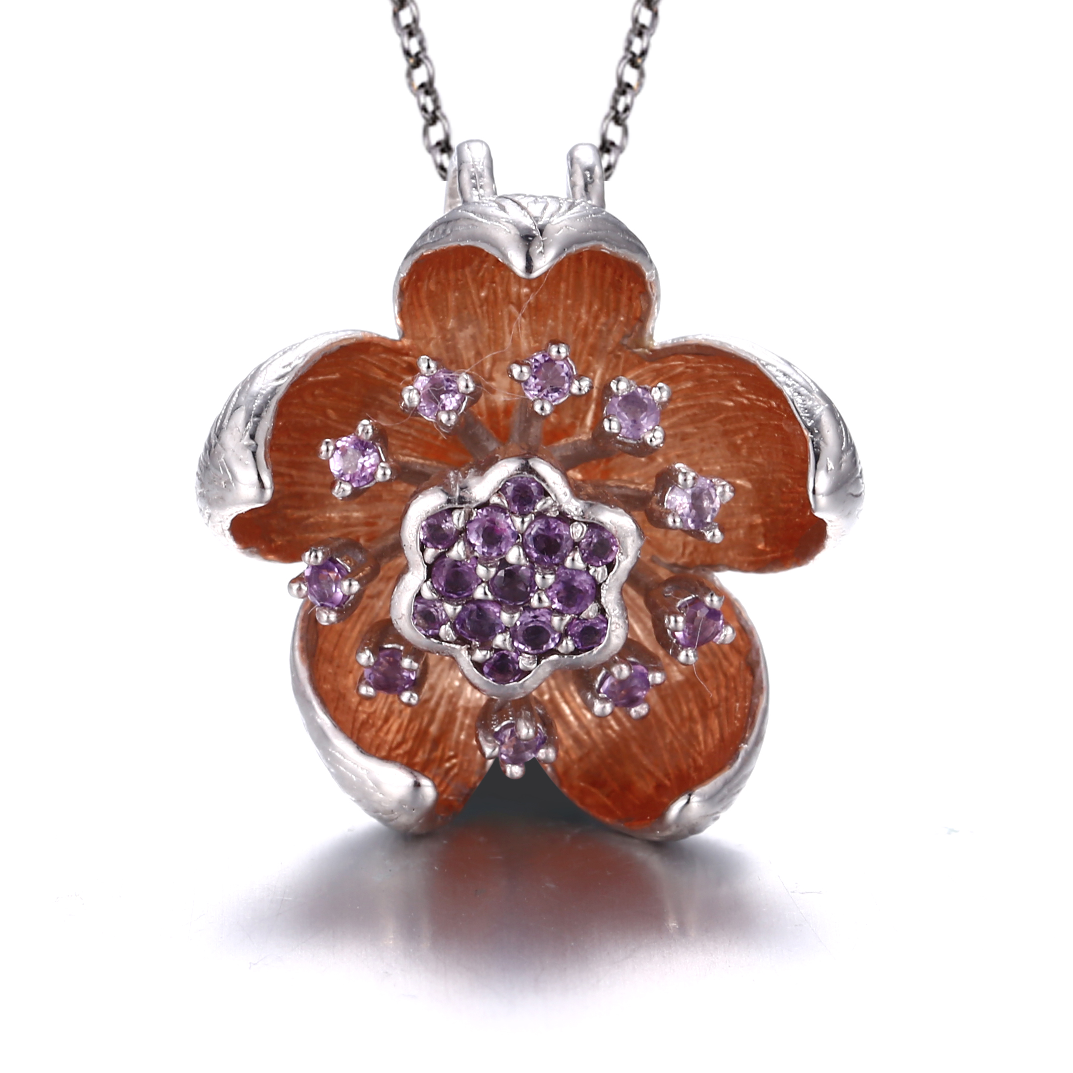 Koleksioni Garden of Babylon lulëzon nga një lule për çdo grua — për t'i kujtuar kujtimet e ëmbla dhe dëshirat e shpirtit të pranverës. Ky gërdan i punuar nga Argjendi i pastër 925 me veshje Ari Rozë dhe një zemër ametisti do të lulëzojë përjetësisht dhe do të mbetet gjithmonë në modë!