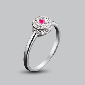 ´´White Topaz & Ruby Ring´´ një dizajn minimal prej argjendi të pastër me topaz të bardhë dhe rubin, me një veshje plot shkëlqim, dedikuar femrave duke u shtuar një prekje elegance në çdo kohë.