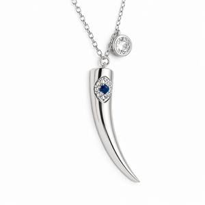 Syri blu — simbol i lashte i mbrojtjes nga energjia negative. Varsia Blue Eyes nga Penelope Jewellery eshte krijuar me kujdes nga argjend 925, me gure Zirkon qe shkelqejne, e mbuluar me platinizim Rhodium per rezistence te gjate.