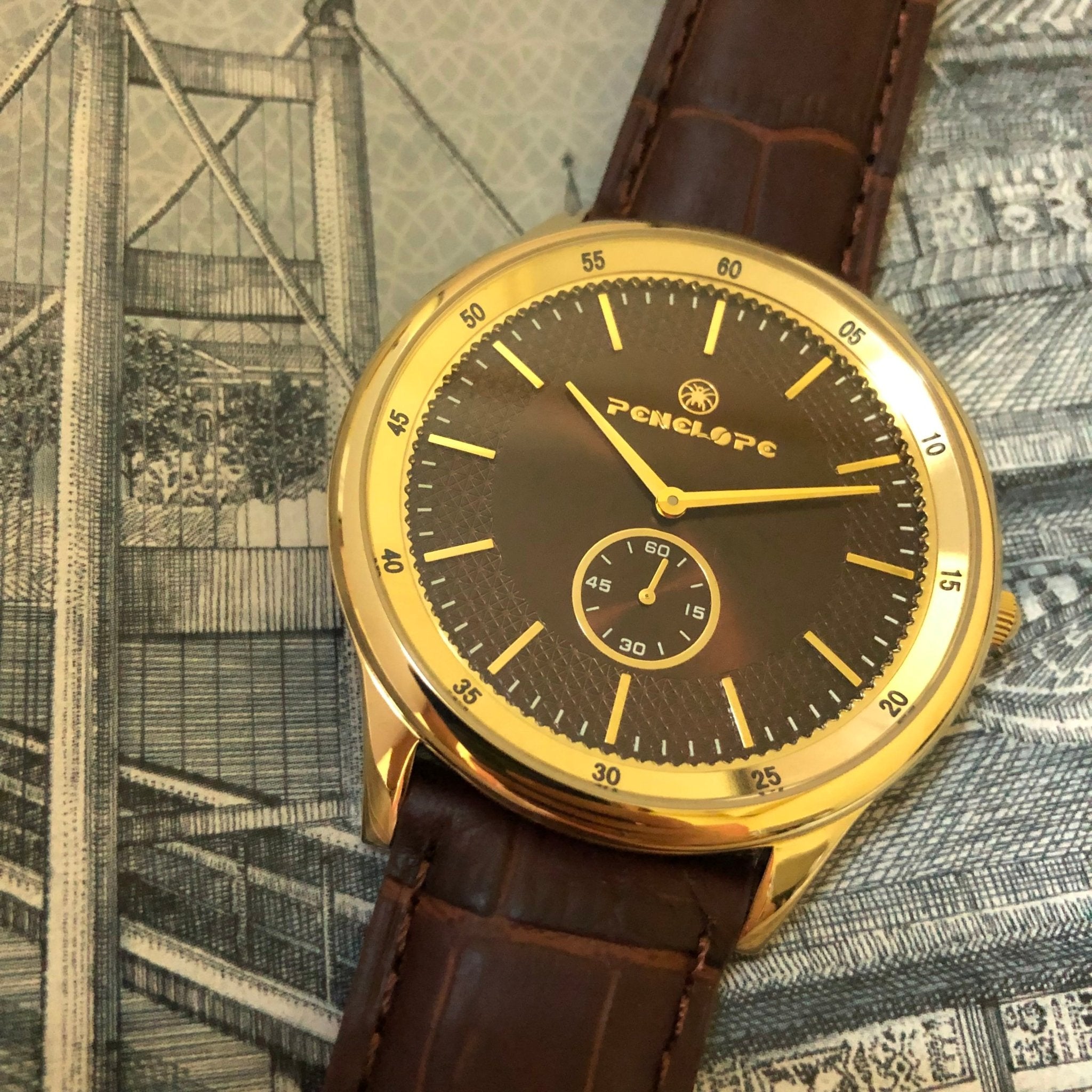 Watch S.Steel 316L,IPGold,brown dial,brown strap