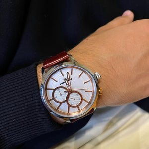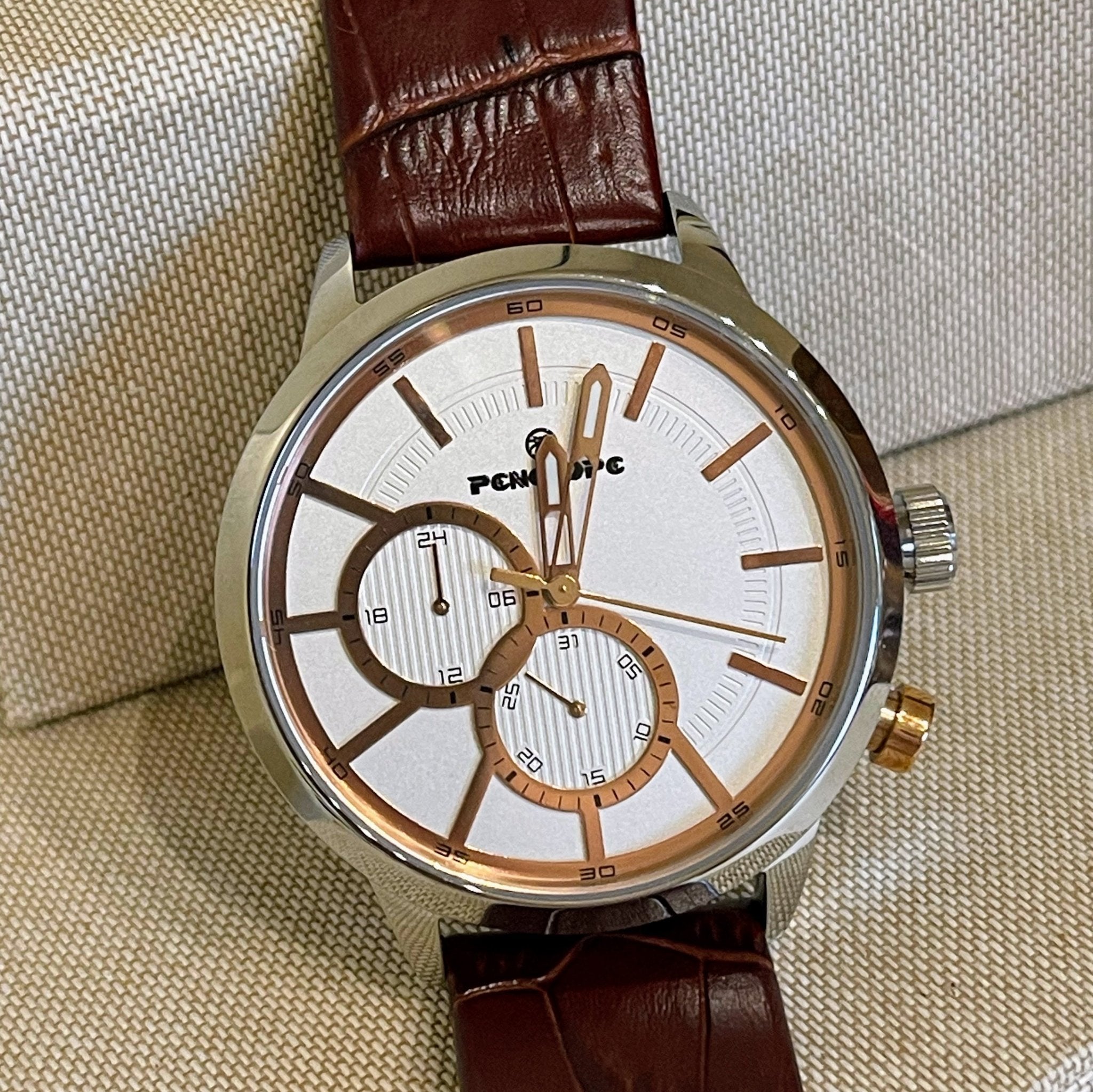 Watch S.Steel IPGold case,black dial,black leather band,IPGold crown